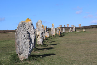 Wanneer we de volgende morgen onze ogen open doen, hebben we gelijk zin om eropuit te gaan! We halen onze fietsen van Harry af en springen erop. Camaret-sur-Mer ligt aan het eind van de middelste uitstulping van het schiereiland Crozon. Op weg naar de kust komen we langs een lange rij menhirs. Ik ben sinds jongs af aan groot fan van de strips van Asterix en Obelix (vooral het eetfestijn aan het eind van elke strip sprak mij erg aan) en ik besefte me dat Obelix ook altijd zo’n steen op zijn rug droeg. Na wat te hebben gegoogeld kom ik erachter dat het dorpje van de Galliërs uit de stripboeken ook in Bretagne lag. Ik doe voor de foto een paar keer alsof ik ook een menhir op mijn rug heb en voel me een heuse Nigofix! Verder komen we tijdens ons fietstochtje nog een ruïne tegen waar vroeger een bekende Bretonse schilder woonde en we snappen meteen waarom hij hier een huis had gebouwd. Het ligt vlak aan de rotsachtige kust en het uitzicht is prachtig.